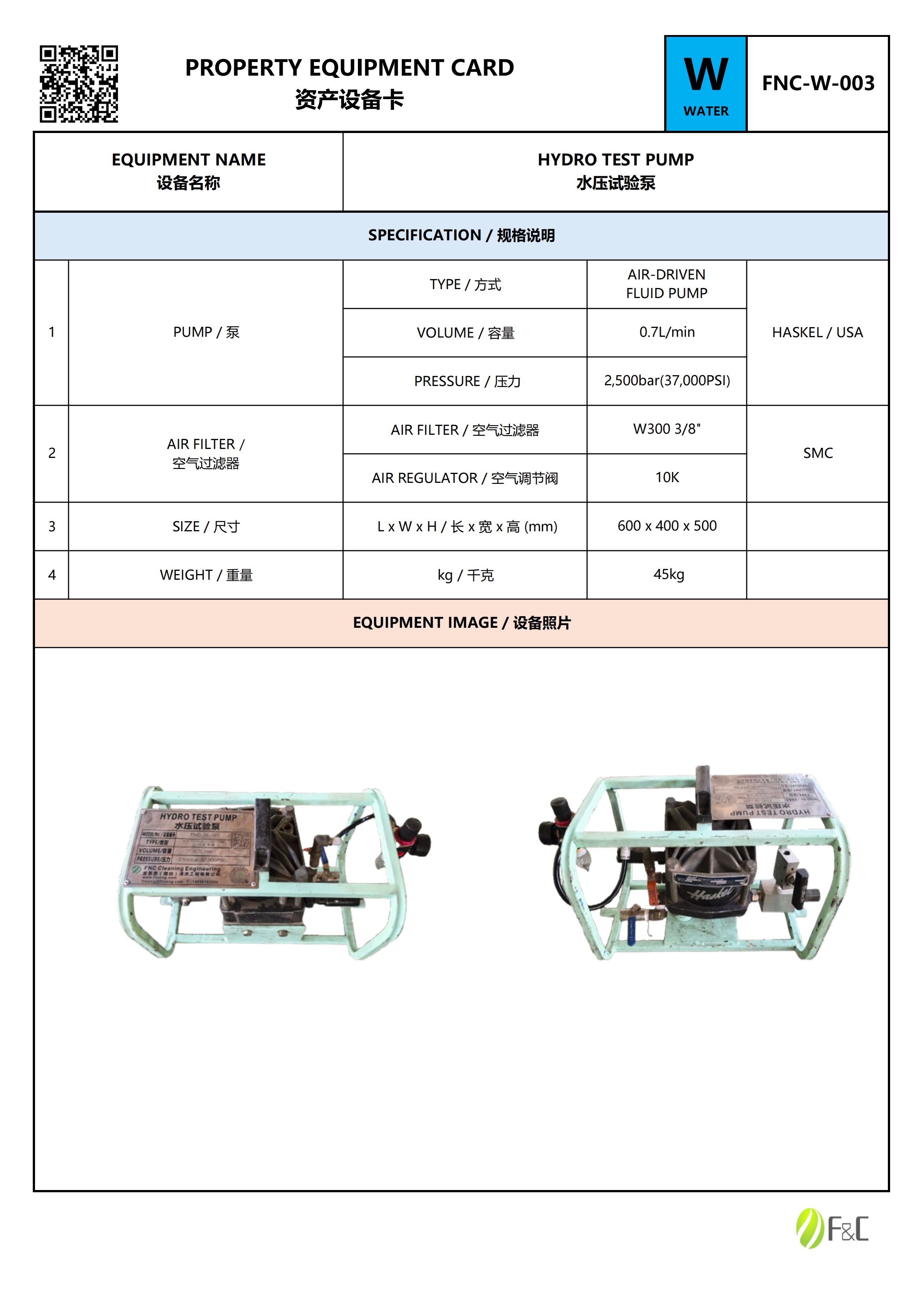 FNC-W-003 – Hydro Test Pump